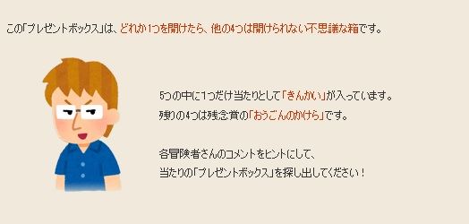「5つの中に1つだけ当たりとして「きんかい」が入っています。