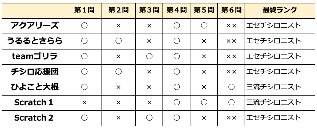 では第二回チシロニスト格付けチェックをお待ちください
